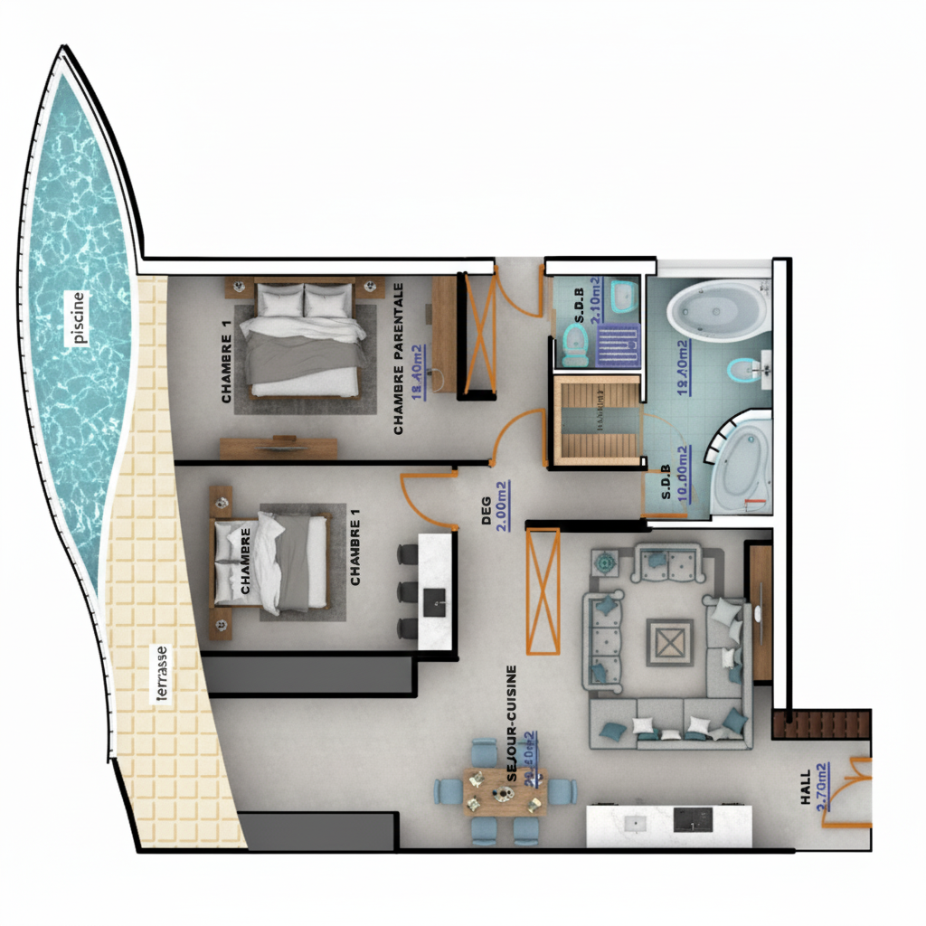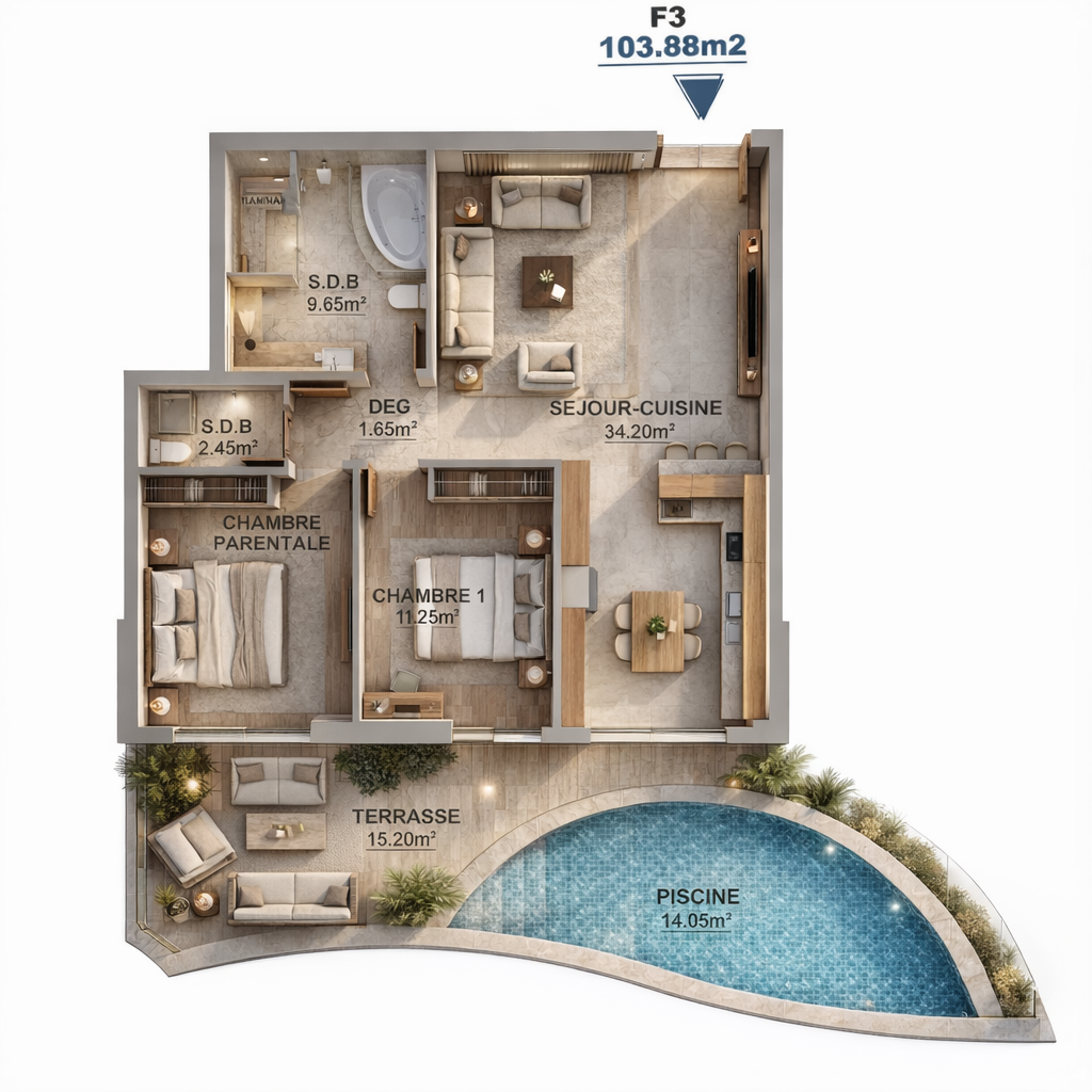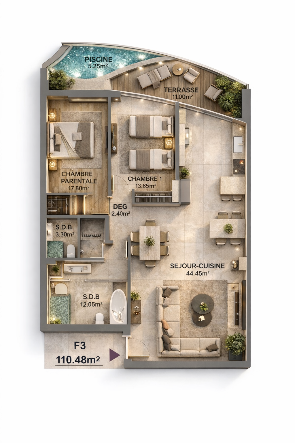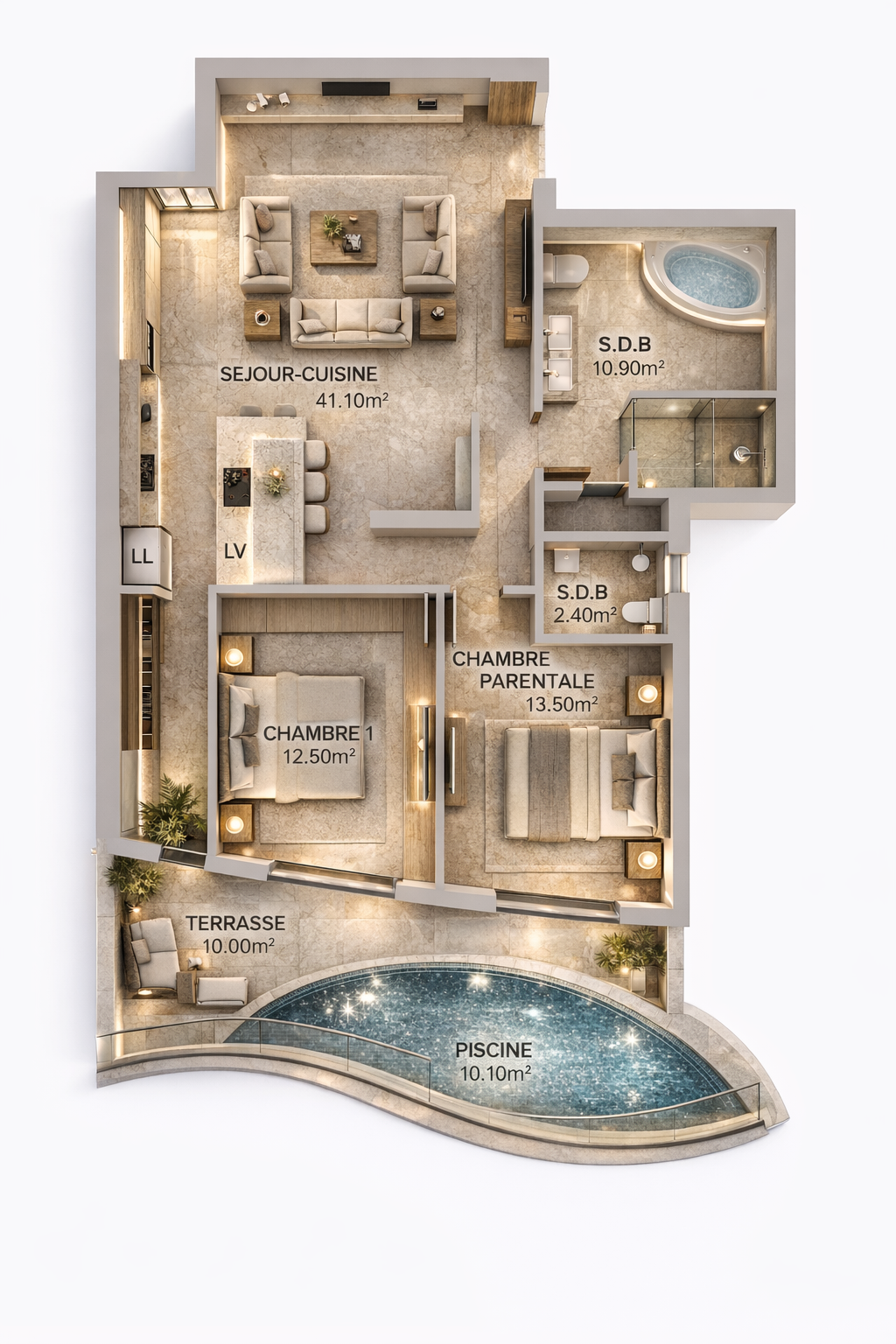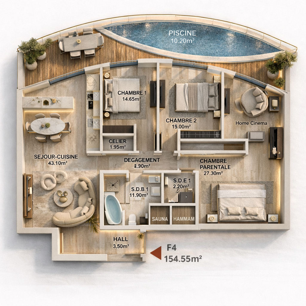 Oubliez les standards. Les résidences Asteria ont été conçues comme des plateaux de vie hors-normes. La lumière naturelle y est omniprésente, magnifiant des volumes purs. Chaque pièce est une invitation à respirer, à recevoir, à vivre l’exception au quotidien.