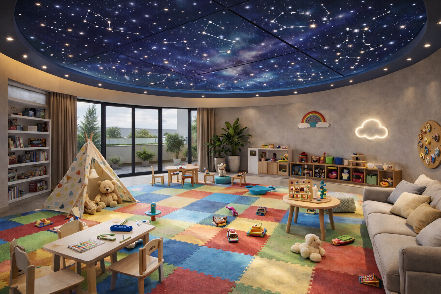 Un royaume dédié aux plus jeunes. Conçu pour leur éveil et leur sécurité, cet espace ludique et lumineux accueille vos enfants pour leurs moments de jeu, sous surveillance bienveillante.